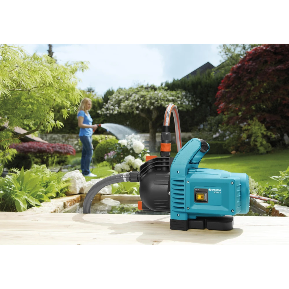De compacte GARDENA Besproeiingspomp 3000/4 is het optimale instapmodel en kan worden gebruikt voor uiteenlopende doeleinden. Door het grote zuigvermogen en de hoge druk is deze pomp ideaal voor besproeiing, drukverhoging of het over- of verpompen van kraan-, regen- of chloorwater voor zwembaden. De pomp is licht en robuust, en eenvoudig in gebruik. Een grote vulopening maakt het vullen van de pomp voor het eerste gebruik eenvoudig en dankzij een ergonomische handgreep is de pomp eenvoudig te verplaatsen. De rubberen voetjes zorgen dat de pomp stabiel staat en met een laag geluids- en trillingsniveau werkt. Ter bescherming van de pomp tegen vorst en dus schade is de pomp voorzien van een aftapschroef voor het aftappen van het achtergebleven water in de pomp. Voor een lange levensduur vertrouwt GARDENA op hoogwaardige materialen. De keramische bescherming en een dubbele afdichting tussen de motor en het loopwerk van de pomp zorgen voor een veilige werking en voorkomen schade aan de pomp. Een thermische beveiligingsschakelaar beschermt de motor tegen overbelasting. Let op: pompen van GARDENA zijn niet geschikt voor het verpompen van zout water, agressieve of licht ontvlambare middelen of voedingsmiddelen.