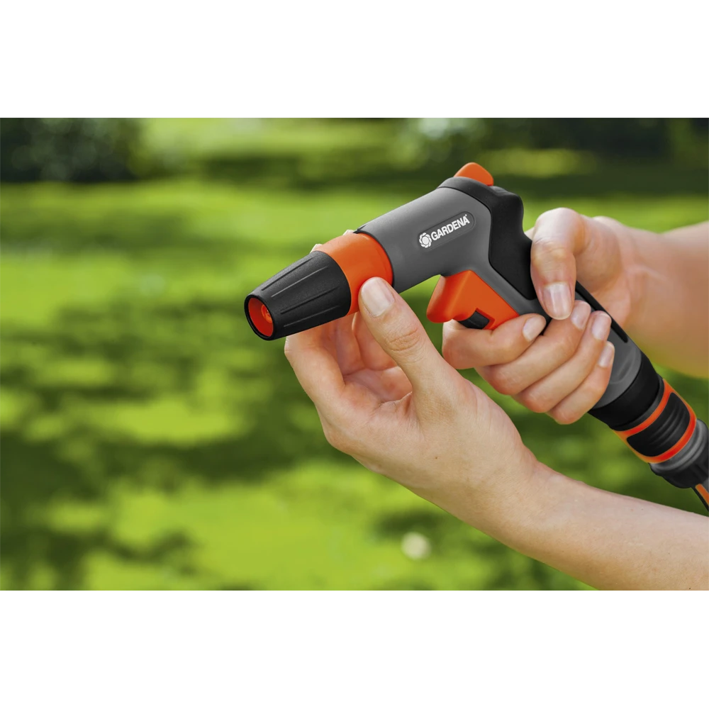 Het GARDENA Classic reinigingspistool met instelbare waterdoorvoer biedt alles wat u nodig heeft voor reinigings- en besproeiingswerkzaamheden in en rondom uw tuin. Met innovatieve, geïntegreerde technologie ter bescherming tegen vorst. Met instelbare waterdoorvoer heeft u altijd de juiste hoeveelheid water voor de toepassing. Zachte kunststofring beschermt tegen beschadiging. De harde straal is geschikt voor reinigingswerkzaamheden en de fijne nevelstraal is ideaal voor het besproeien van kwetsbare planten. Als het water achter elkaar moet blijven stromen, kunt u de hendel vastzetten. Een vermoeide hand wordt zo voorkomen.